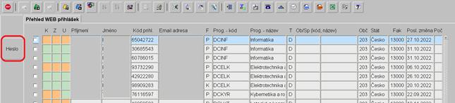 3) Přehled webových přihlášek - roli RDS bylo zpřístupněno tlačítko "Heslo" - frm 81007