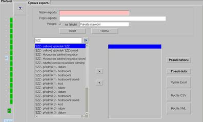 snadnější vyhledávání položek v dialozích pro export a nastavení vlastních
